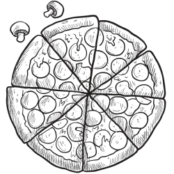 Gehakt, salami, hesp, champignons, paprika, ajuin en lookpoeder